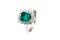 in oro bianco, a margherita, con al centro smeraldo taglio ottagonale a gradini di ct 1,75 ca, contornato da diamanti taglio brillante per totali ct 0,76 ca, probabile colore G-H, purezza IF-VVS