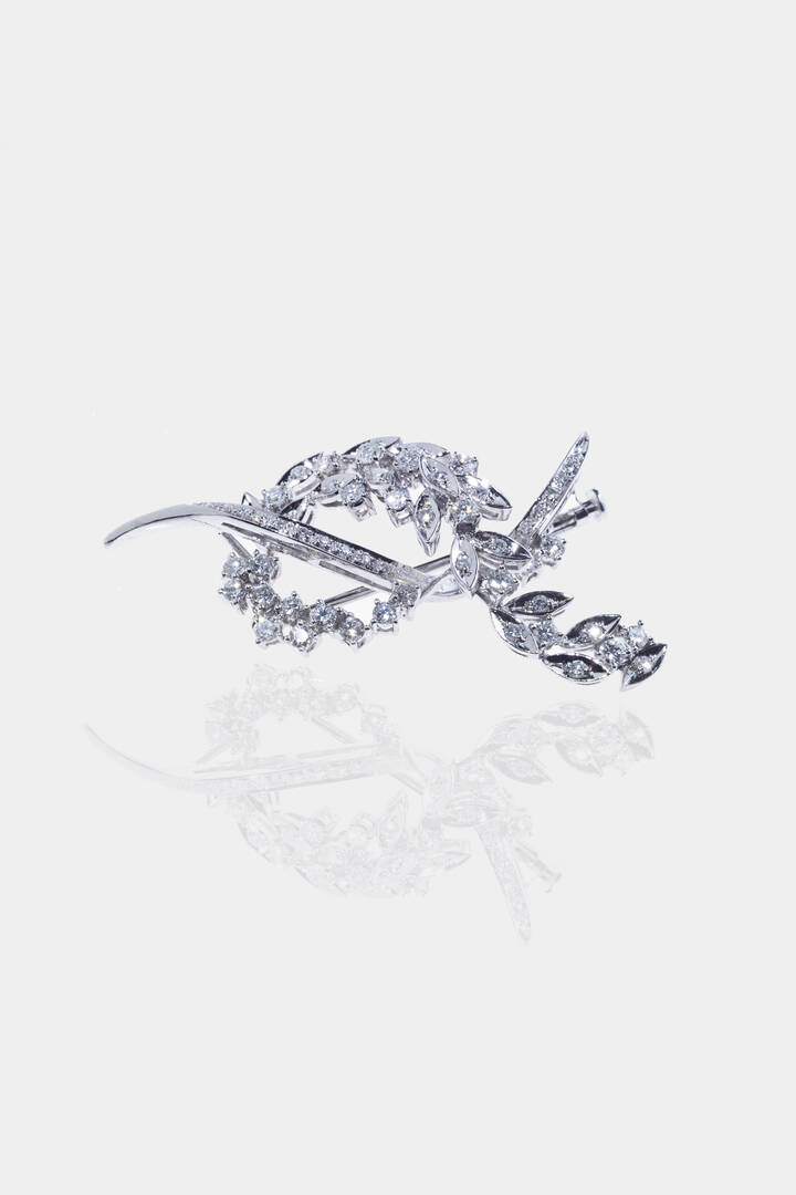 in oro bianco a racemi intrecciati con diamanti taglio brillante e 8/8 per totali ct 1,0 ca
