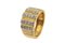 in oro giallo, a fascia fesonata, con file verticali di diamanti taglio brillante per totali ct 0,30 ca