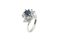 in oro bianco, sommità a cespuglio con zaffiro taglio ovale di ct 0,60 ca e diamantini taglio brillante a decoro per totali ct 0,20 ca
