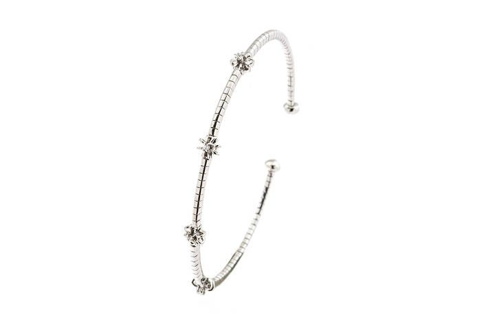 rigido, in oro bianco, con fiorellini in diamanti taglio brillante per totali ct 0,07 ca, probabile colore G-H, purezza IF-VVS