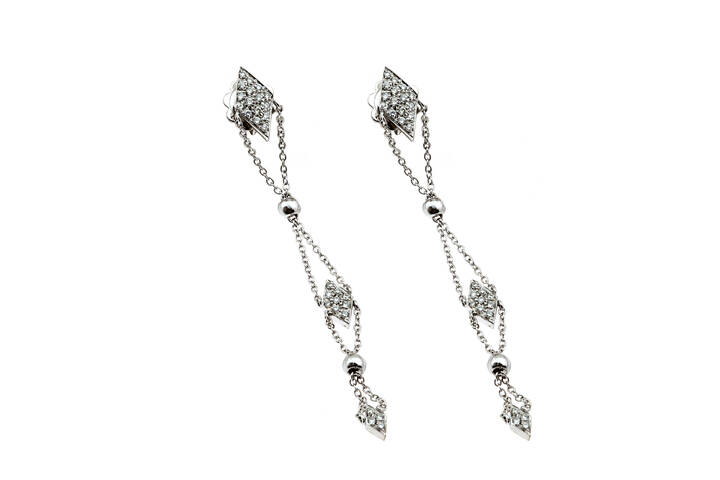 in oro bianco con sei rombi pendenti con pavé di diamanti taglio brillante per totali ct 0,30 ca