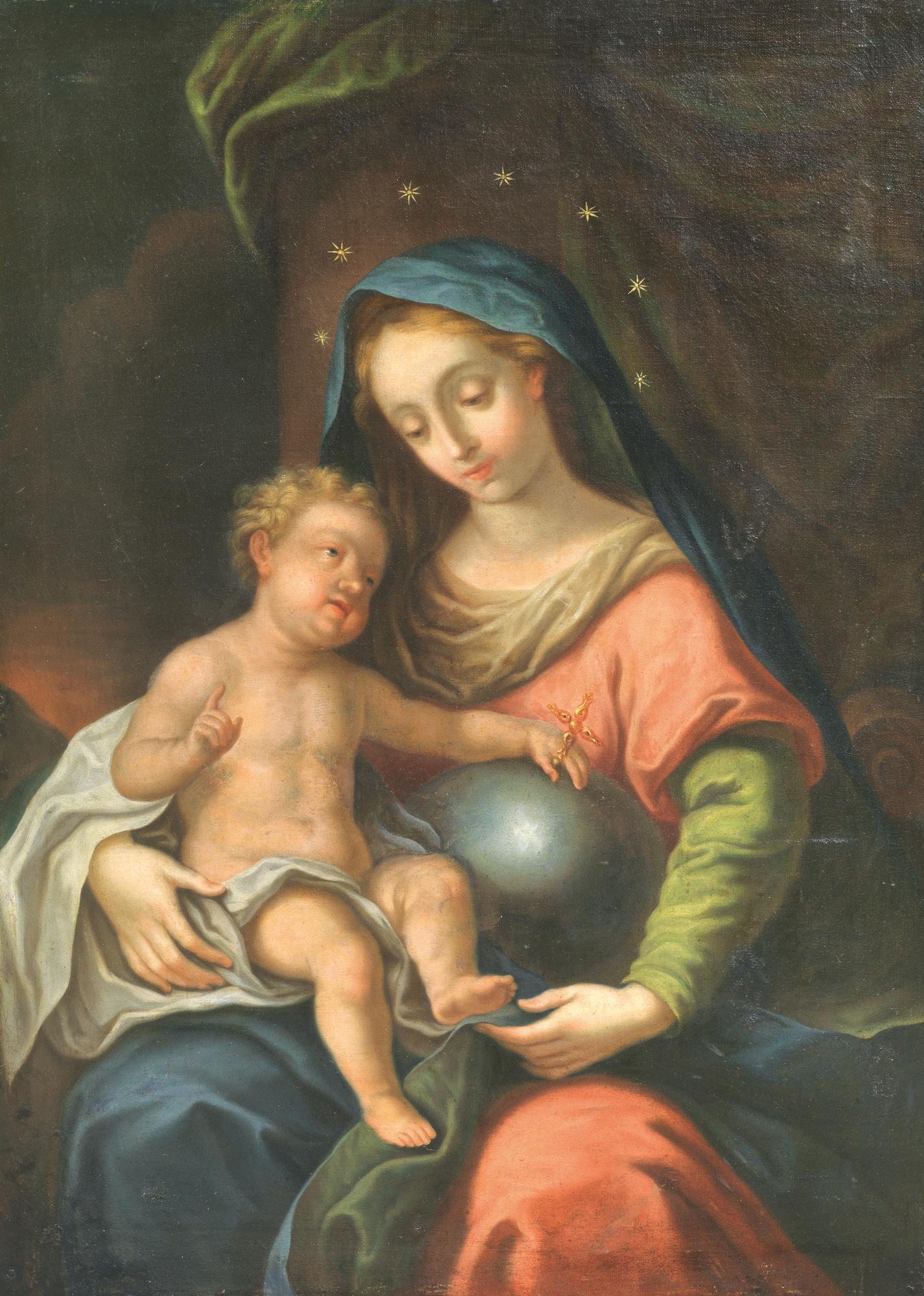 Scuola Emiliana del XVIII secolo MADONNA CON BAMBINO olio su tela, cm 105x74