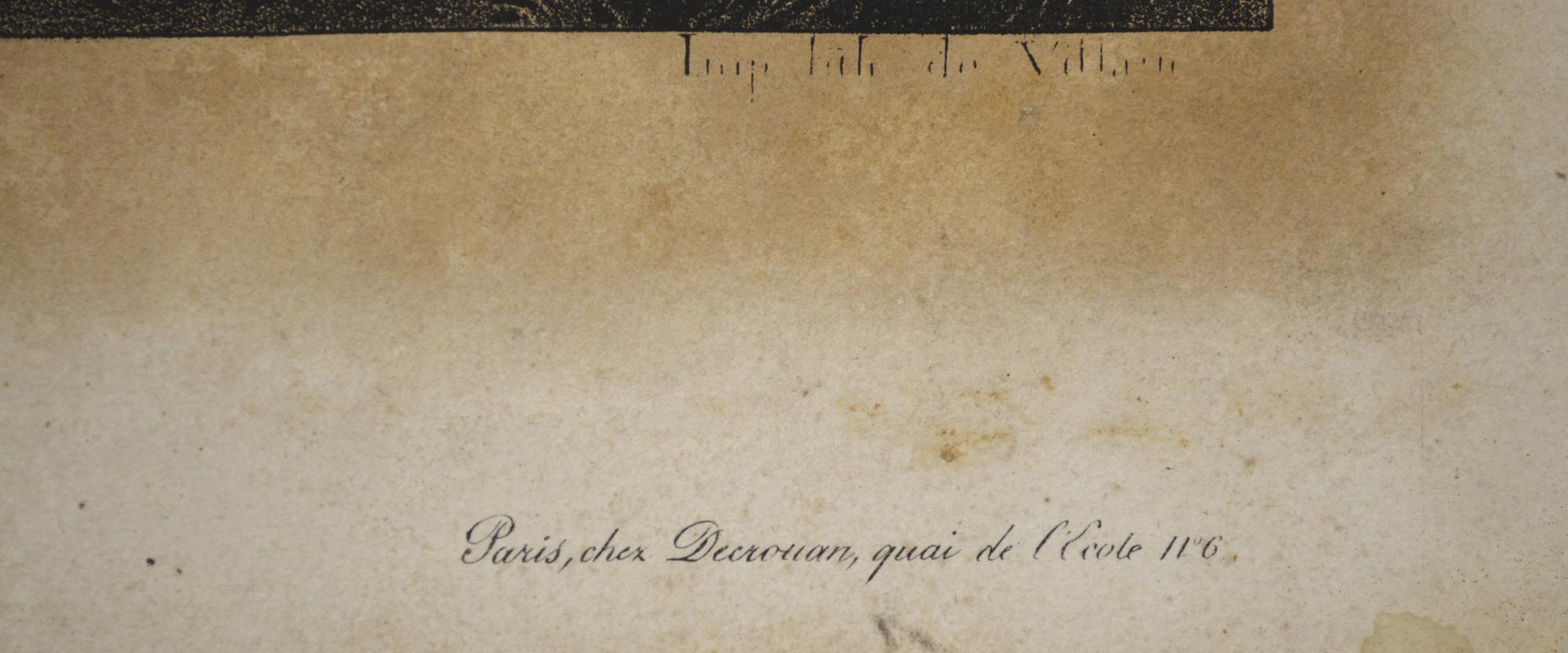 Scuola del XIX secolo L'ORAGE litografia, cm 42x61; foglio cm 55x73 Tracce di...