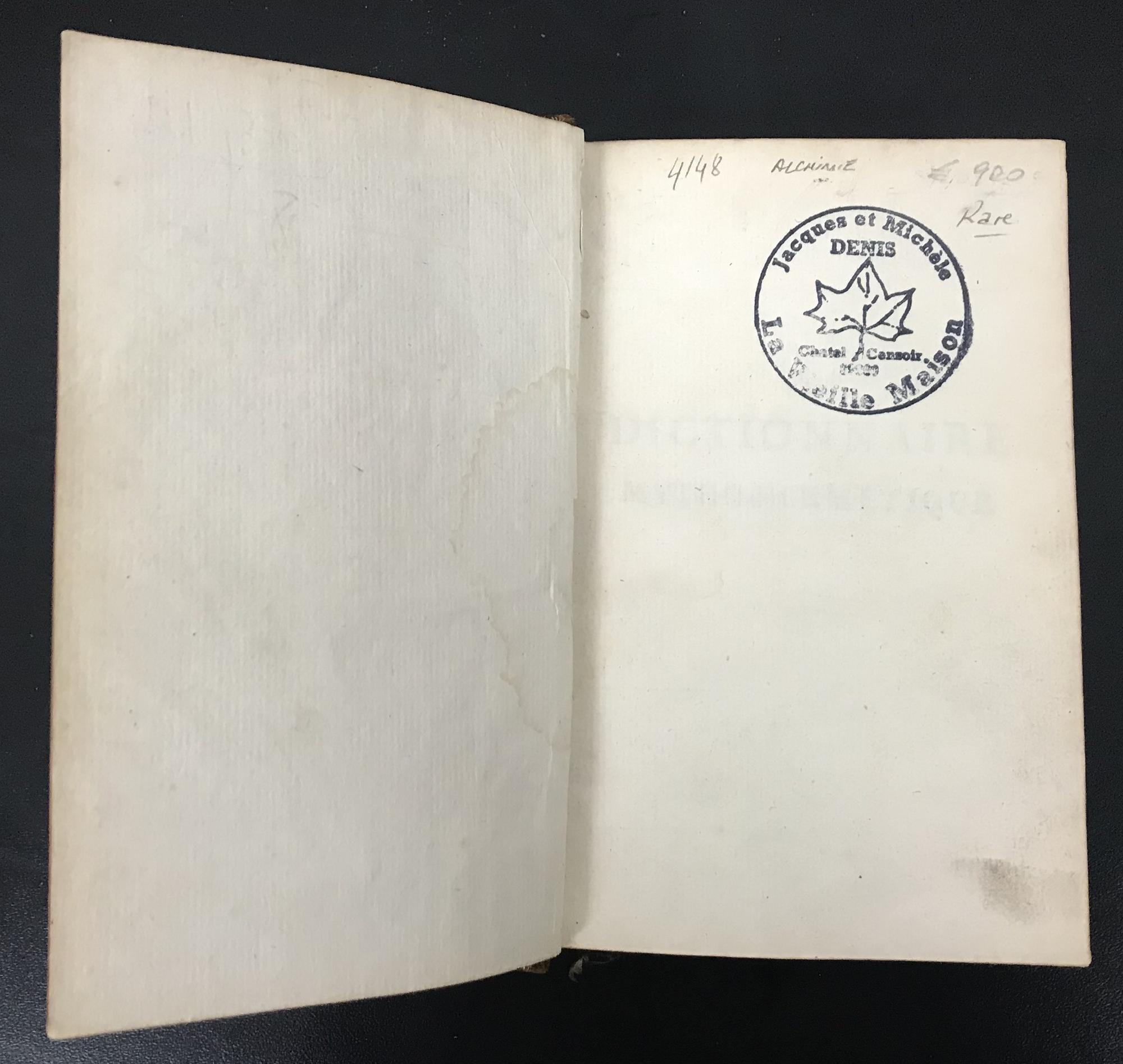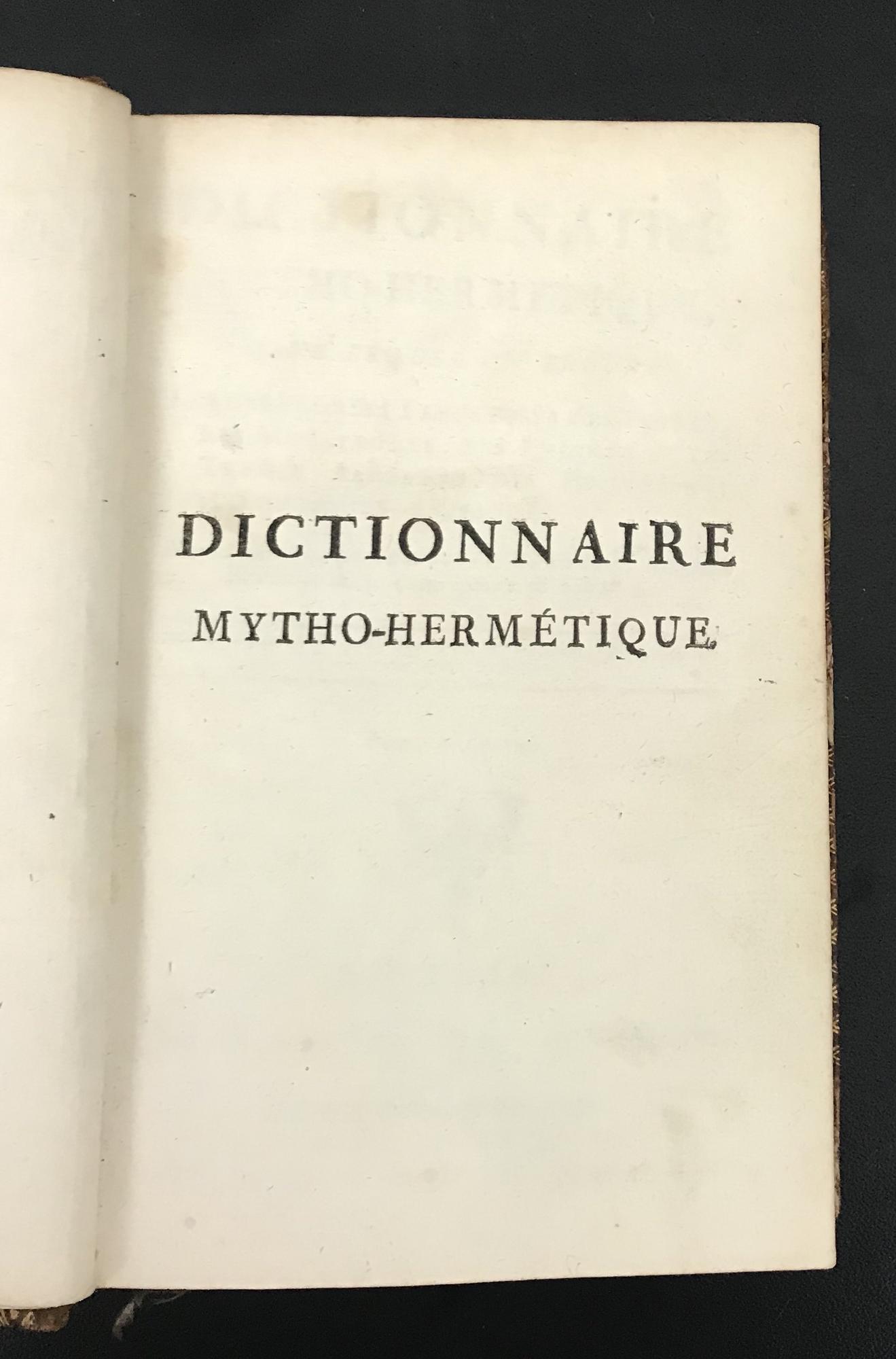 DICTIONNAIRE MYTHO-HERMETIQUE DANS LEQUEL ON TROUVE LES ALLEGORIES FABULEUSES DES POETES, LES METAPHORES, LES ENIGMES ET LES TERMES BARBARES DES PHILOSOPHES HERMETIQUES EXPLIQUES. A PARIS, CHEZ DELALAIN, 1787