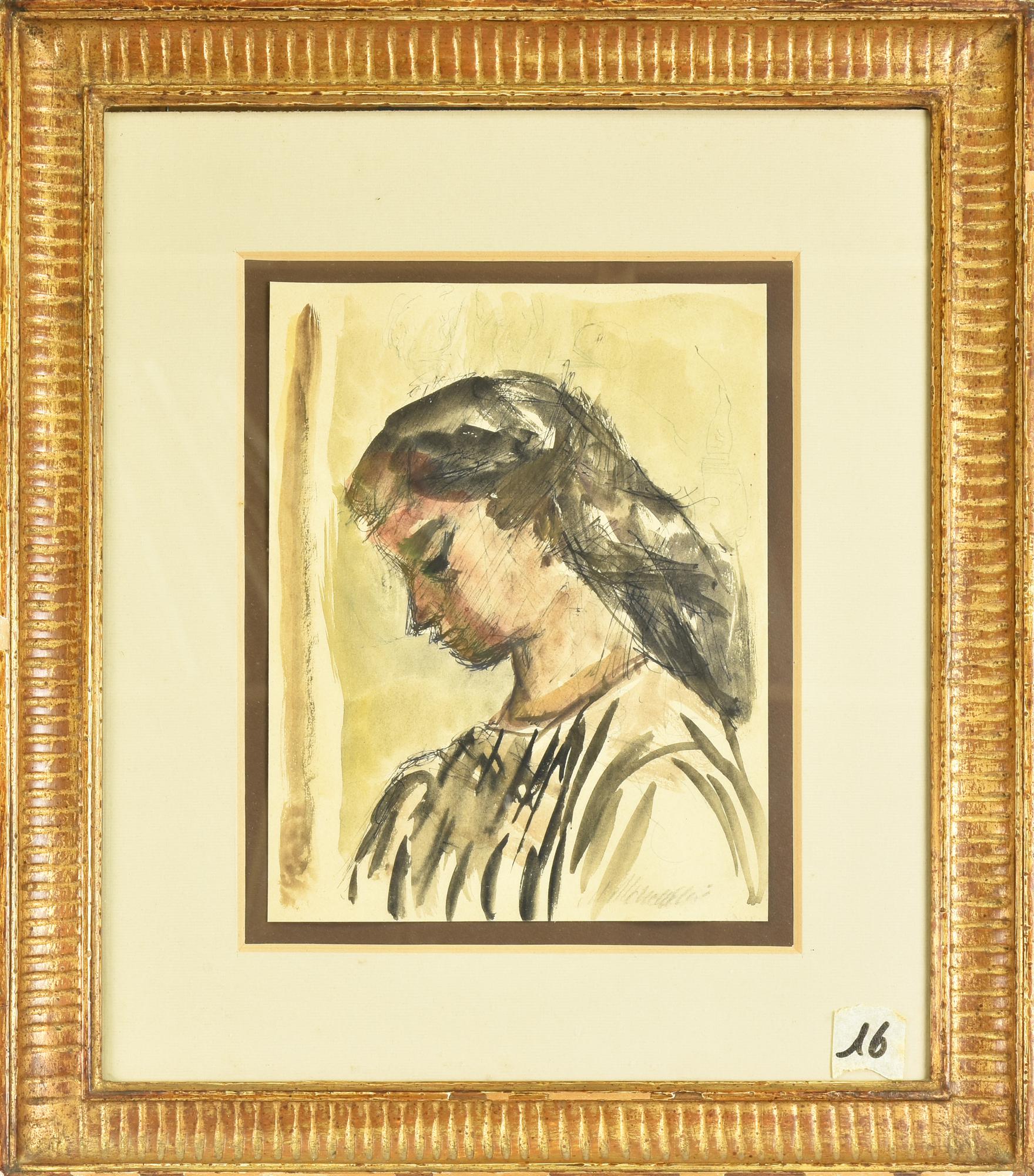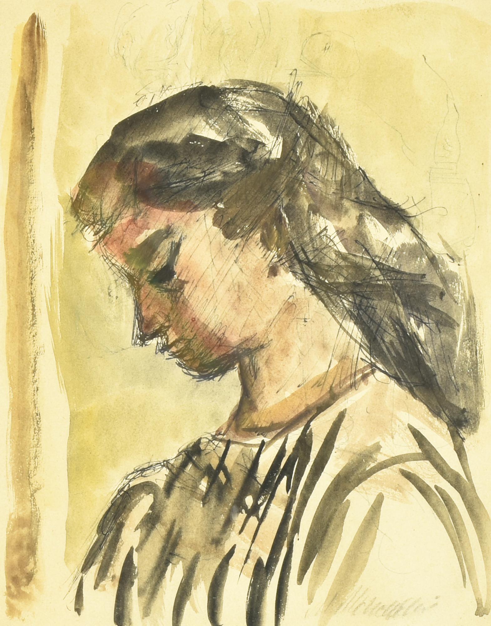 Mario Marcucci RITRATTO FEMMINILE tempera e gouache su carta, cm 27x21 firma