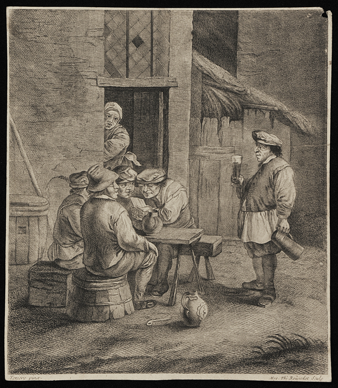 MAG. THÉ. ROUSSELET (FRANCIA, XIX SECOLO?) Di f ronte all'osteria (da David Teniers) Calcografia su carta 171x197 mm. Autori in lastra Da un'opera non identif icata di un pittore della famiglia Teniers, forse David IV (1672-1771).