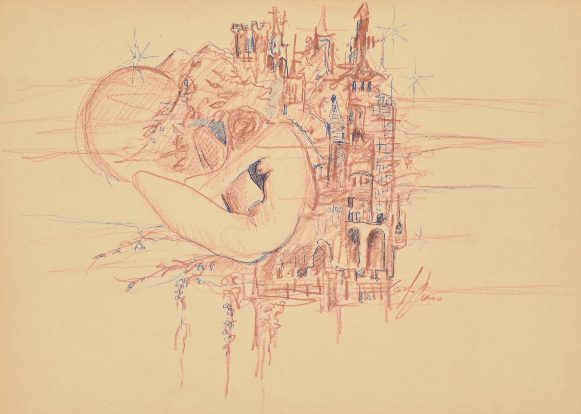 Piero Cerato NUDO E CITTA' tecnica mista su carta, cm 25x35 firma L'opera...