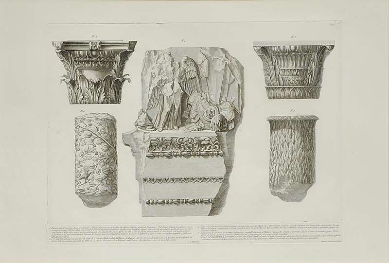 GIOVAN BATTISTA PIRANESI (1720-1778) Frammenti di marmo, Tav. VIII, 386 Calcografia su carta 601x438 mm. (lastra), 800x520 mm. (foglio) Edizione postuma. Non si rilevano marchi