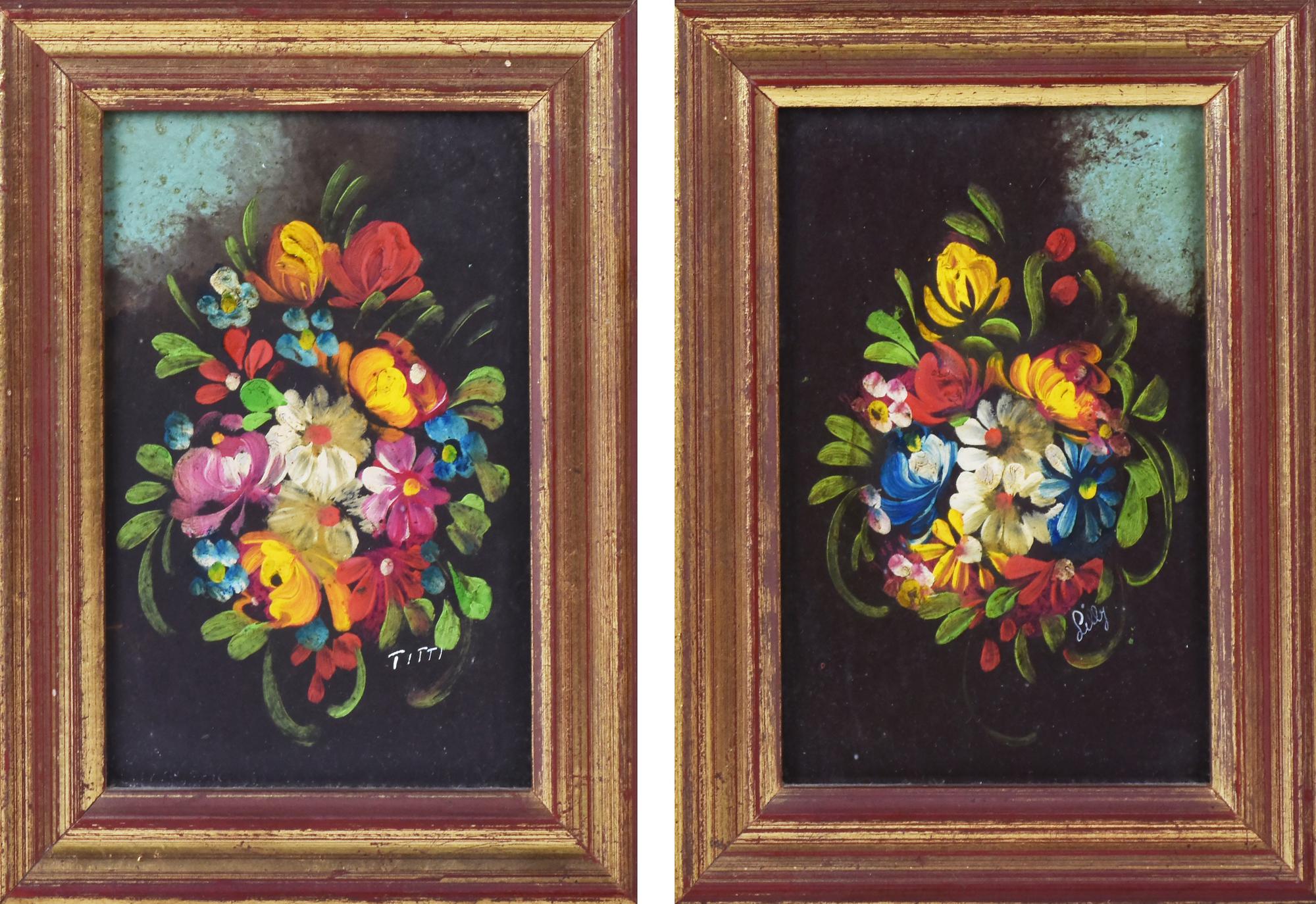 Titti e Lilly COPPIA DI DIPINTI olio su masonite, cm 16x11 ciascuno firme