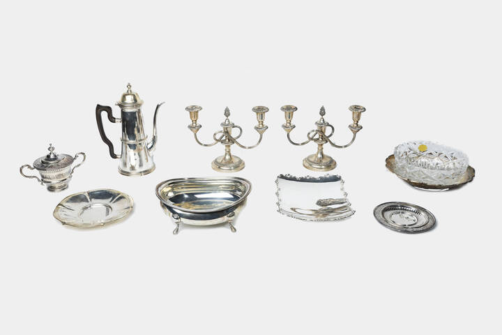 LOTTO DI NOVE OGGETTI IN ARGENTO