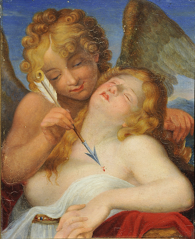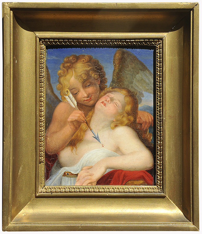ANDREA APPIANI (1754-1817). AMBITO DI Potenza d'Amore Coppia di oli su tavola 15,1x19 cm. ciascuno Cadute di colore una abrasione della superficie pittorica