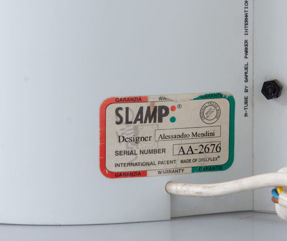 Lampada da tavolo in plastica, opalflex. Marchio originale. Con difetti. Prod. SLAMP, Italia, 2003 Cm 58x15x27,5.