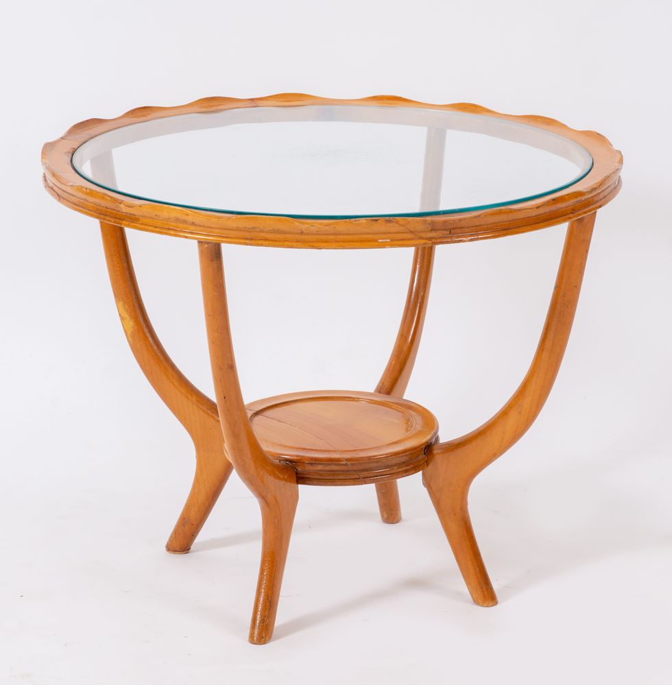 PAOLO BUFFA (Attribuito) Tavolino da caffè in legno con piano in vetro. Prod....