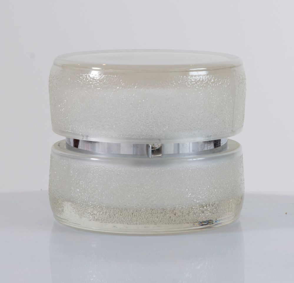 Lampada da tavolo con struttura in metallo e vetro satinato modello Yo-Yo. Prod. Fontana Arte, Italia, 1971 ca. Cm 12x14x14.