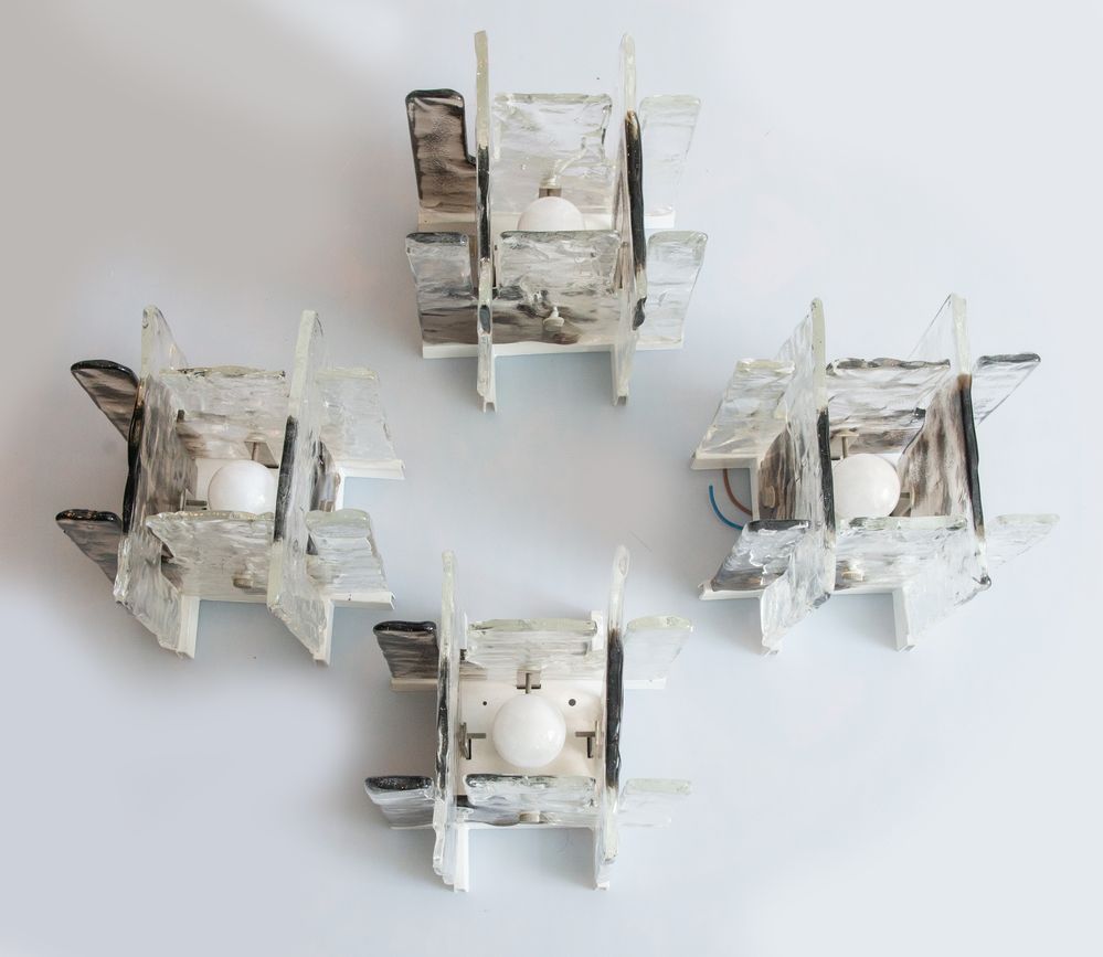 Lotto 12 | MAZZEGA (Attribuito) Quattro applique da muro con struttura in metallo e...