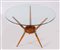 Tavolino da caffè in legno curvato, con rifiniture in ottone e piano in vetro. Lievi difetti. Prod. Italia, 1950 ca. Cm 51x70x70.
