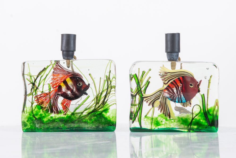 Coppia di lampade in vetro soffiato di murano modello Acquario. Marchio originale. Prod. Murano, Italia, 1950 ca. Cm 17x4x15.