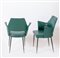 Coppia di sedie con struttura in metallo e legno e rivestimento in pelle. Lievi difetti. Prod. Italia, 1950 ca. Cm 83x50x65.