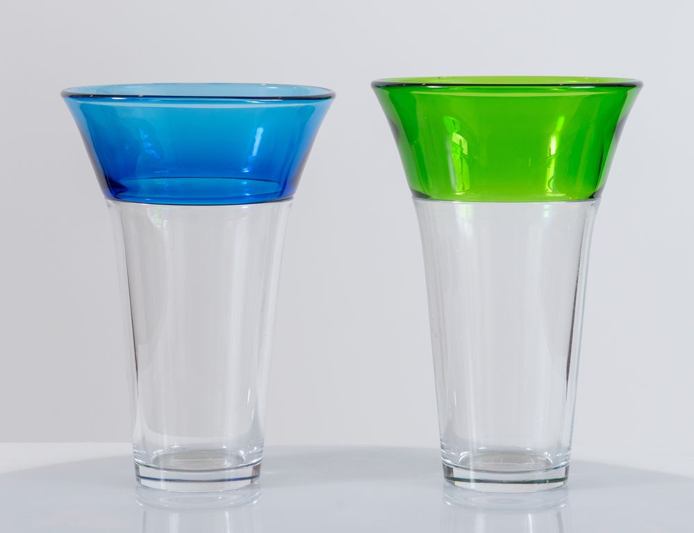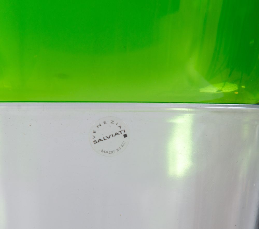 SALVIATI Coppia di vasi in vetro soffiato di murano. Marchio originale. Prod....
