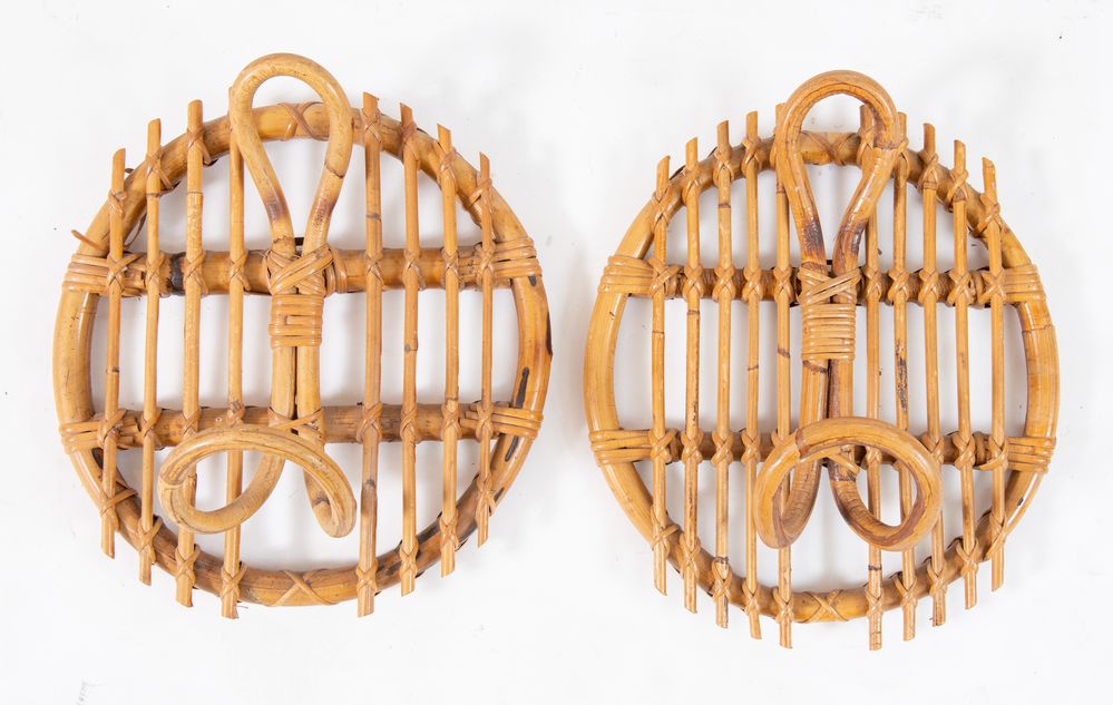 FRANCA HELG & FRANCO ALBINI Coppia di appendiabiti in bambù e canna d’india....