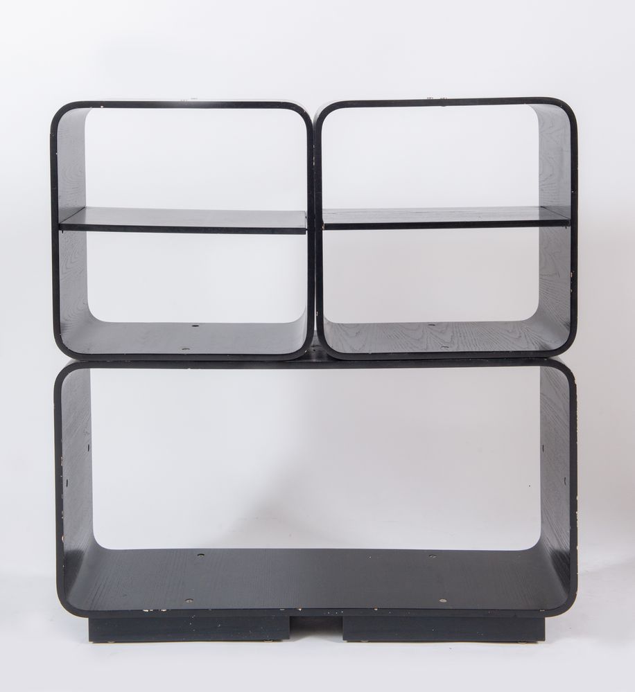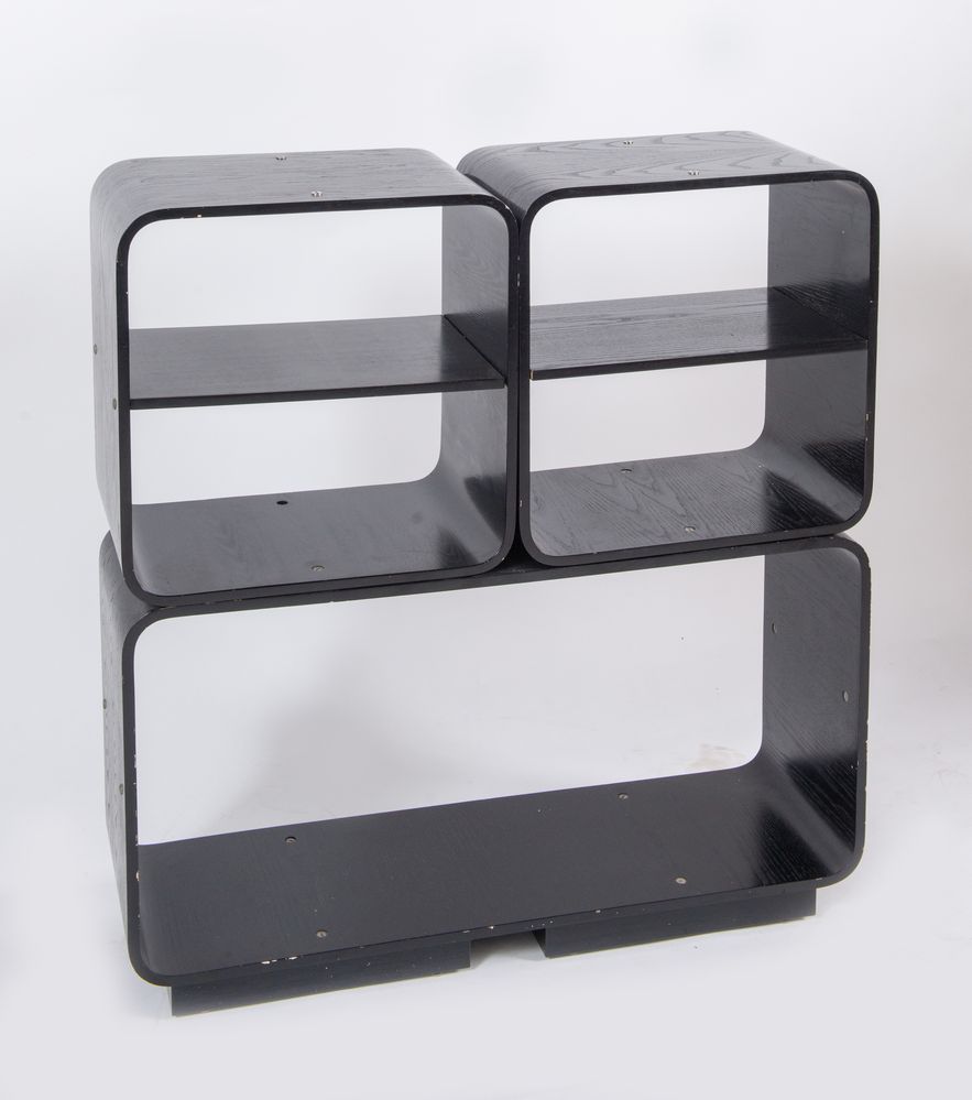 Libreria componibile in legno curvato laccato. Lievi difetti con mancanze. Prod. FIARM, Italia, 1960 ca. Cm 100x30x93.