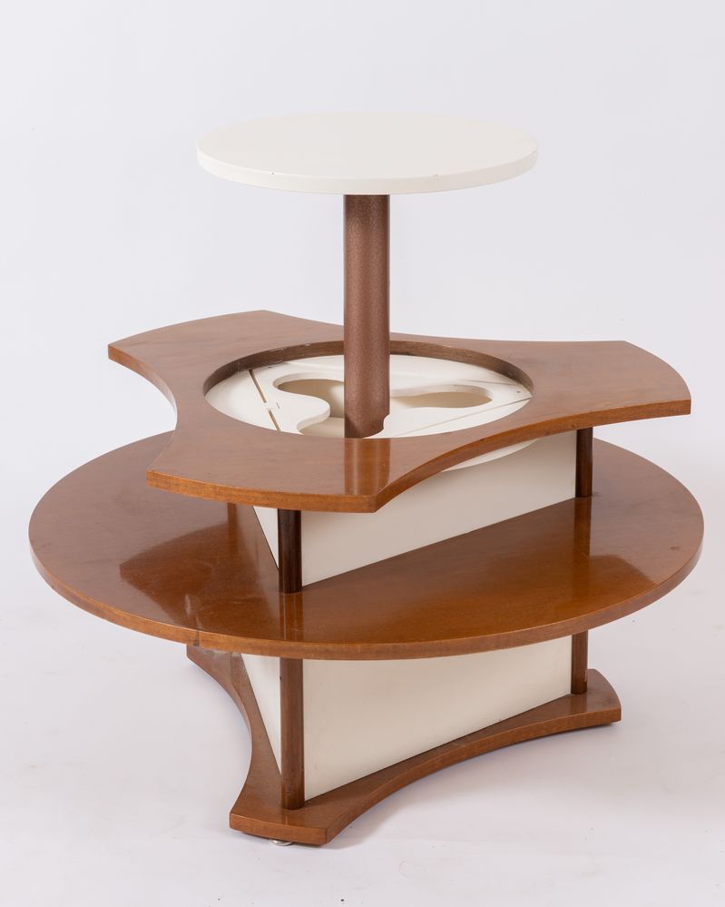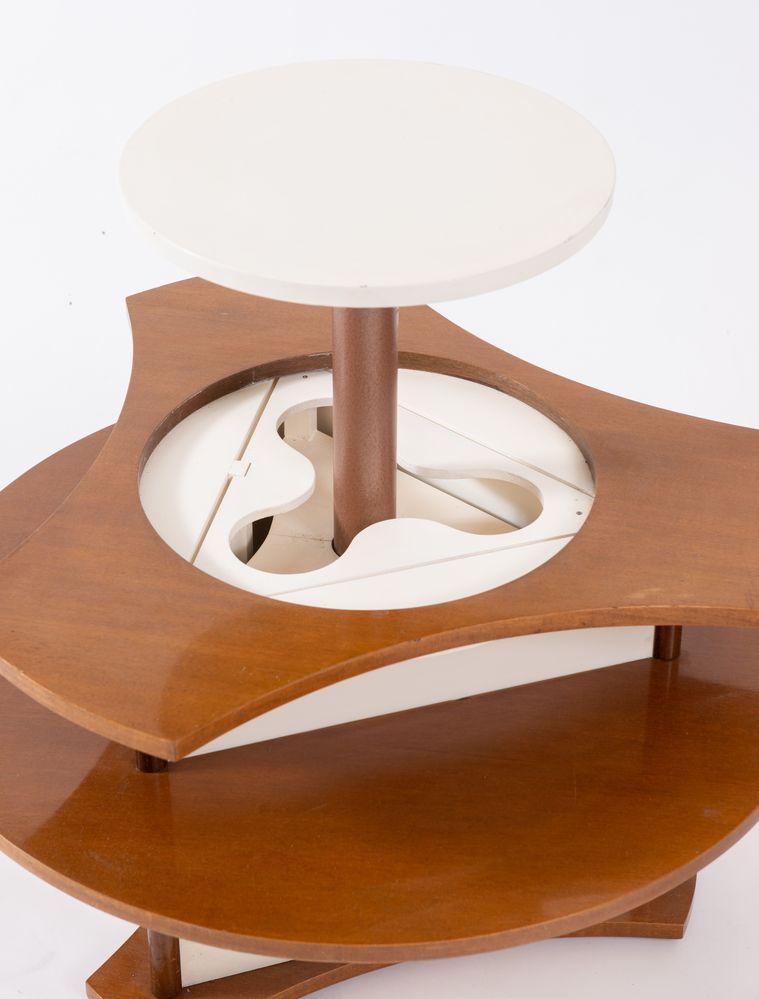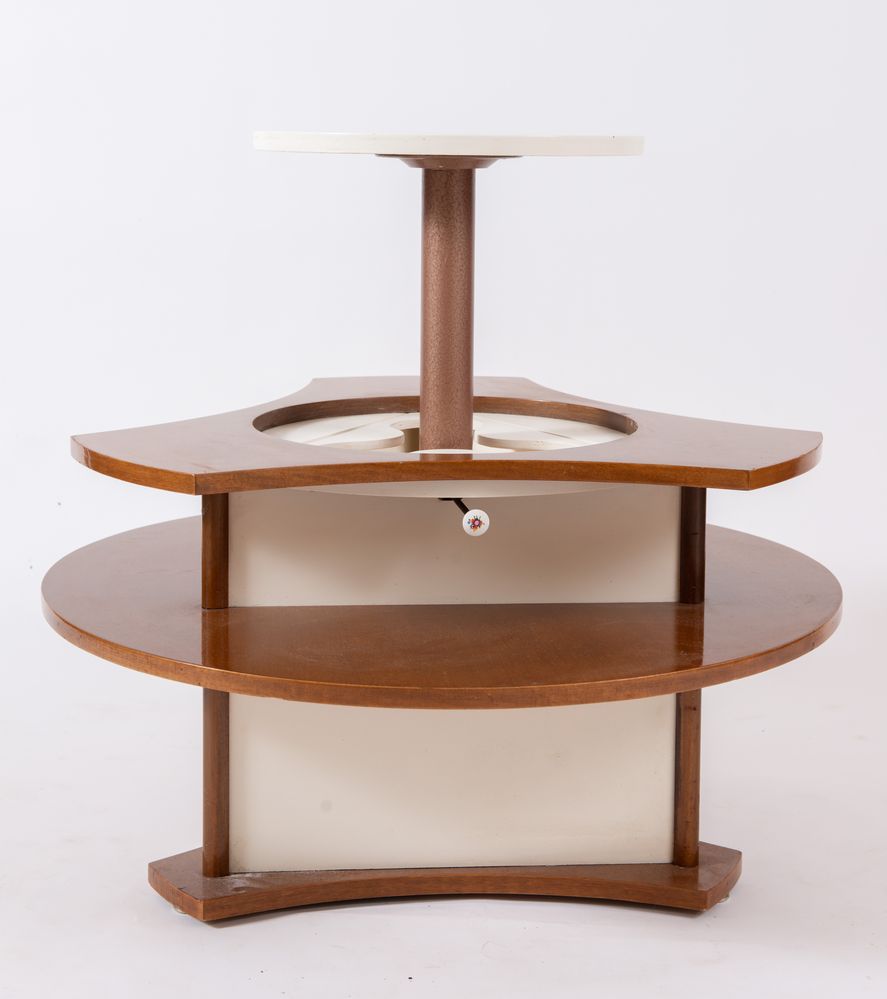 Tavolino porta bottiglie con scomparto alzabile, in legno. Prod. Italia, 1960...