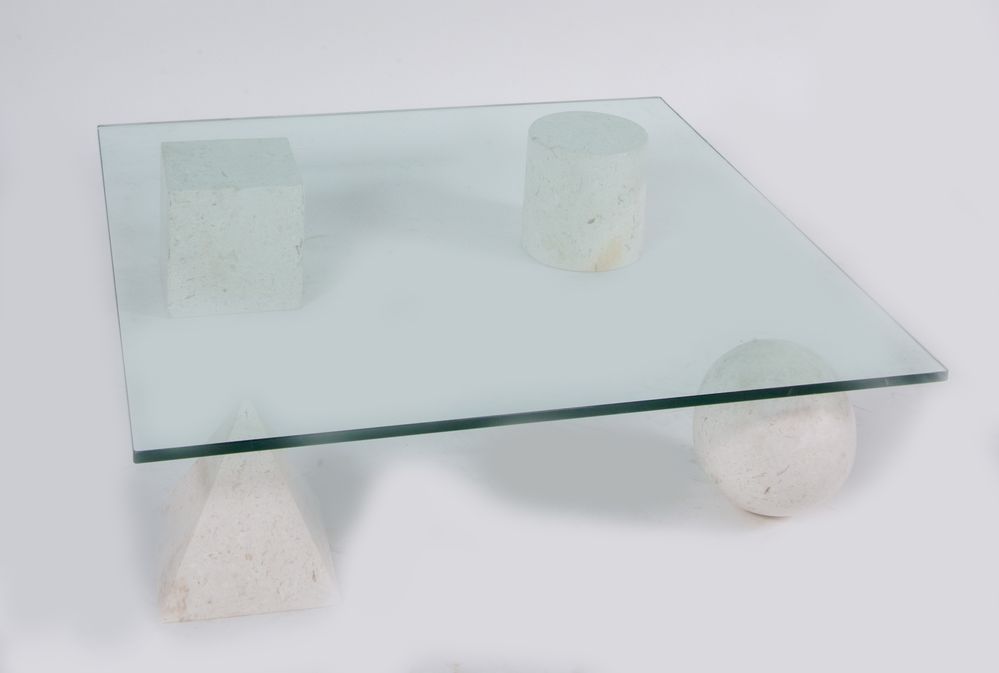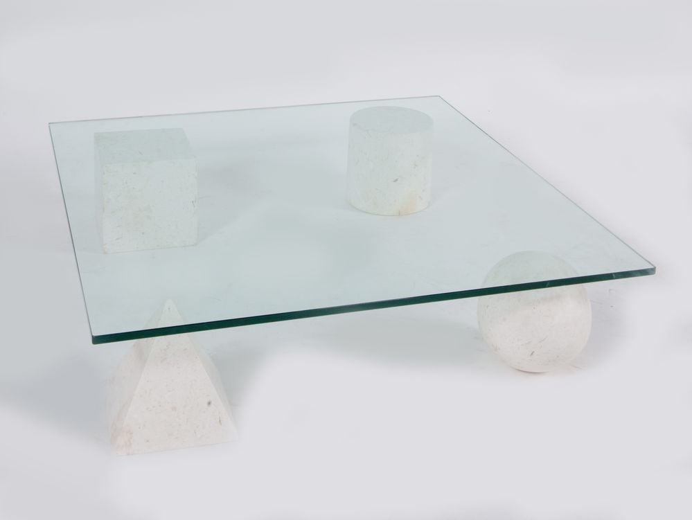 LELLA & MASSIMO VIGNELLI Tavolino da salotto modello Metafora. Basi in marmo...