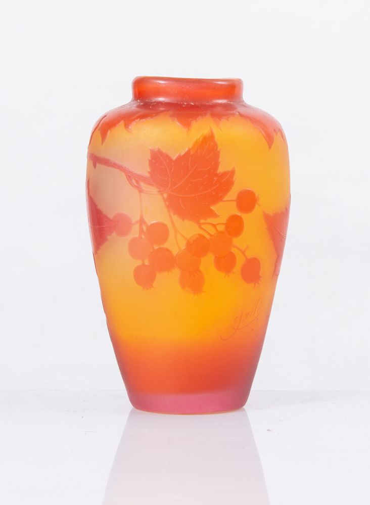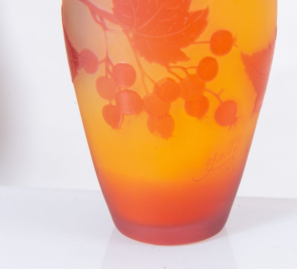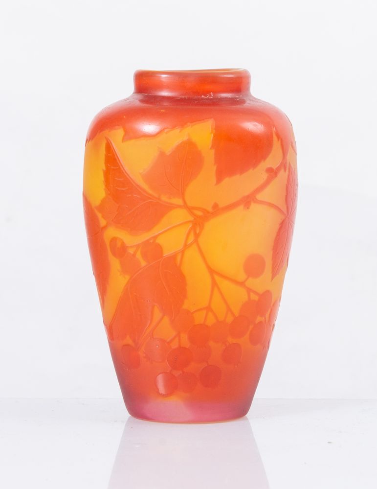 Lotto 139 | EMILE GALLE’ Vaso in vetro soffiato cammeo. Marchio originale. Prod. Emile...