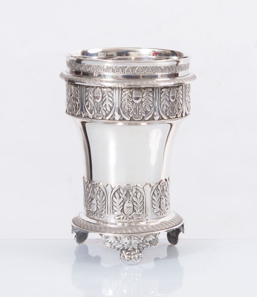 Lotto 160 | Vaso in argento. Sotto la base reca punzoni non decifrati. Cm 14x Ø 9,5....
