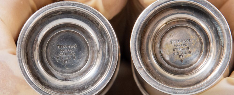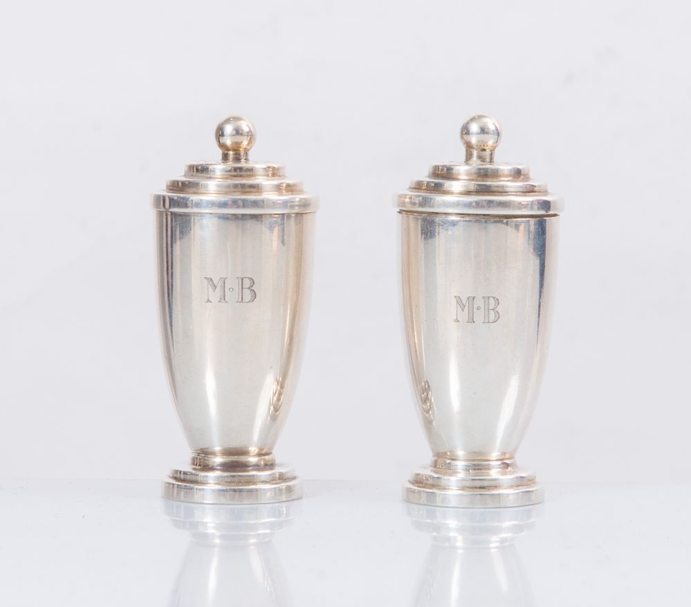 TIFFANY & CO., New York. Lotto composto da portasale e portapepe in argento 925. Sotto la base recano punzoni: Tiffany & Co. Makers, Sterling, 22316, m. Cadauno di cm 8x Ø 3,5. Peso complessivo: 118 gr.