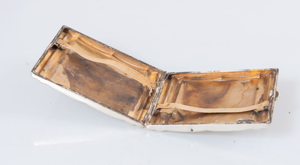 Scatola portasigarette interno vermeil con dettaglio in oro rosa. Non reca punzoni evidenti. Cm 1,5x9,5x7,7. Peso: 88 gr.