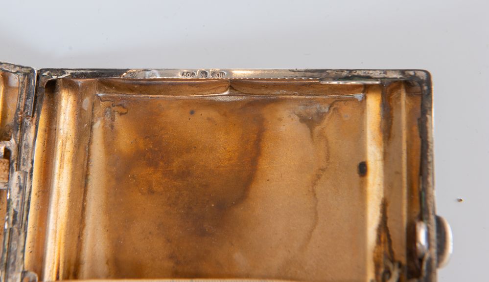 Scatola portasigarette interno vermeil con dettaglio in oro rosa. Non reca...