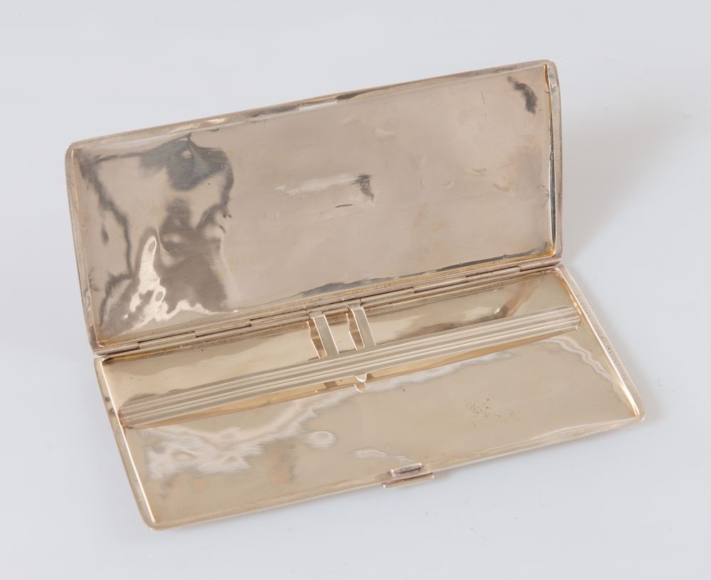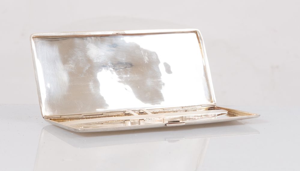 DUNHILL. Portasigarette in argento 925 con placcature in oro giallo e rosa 14 carati. All'interno reca punzoni: Dunhill, Sterling e 14Kgoldinlaid. Cm 0,7x17,4x8. Peso complessivo: 199 gr.