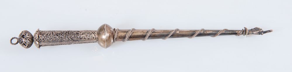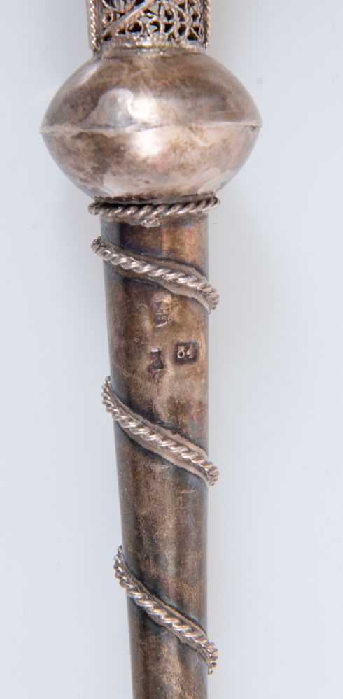 Russia, anni '60 del XIX secolo. Yad in argento 84 zolotnik e filigrana d'argento. A lato reca punzoni parzialmente leggibili: 84, stemma della città e punzone datario con saggiatore. Cm 30. Peso 62 gr.