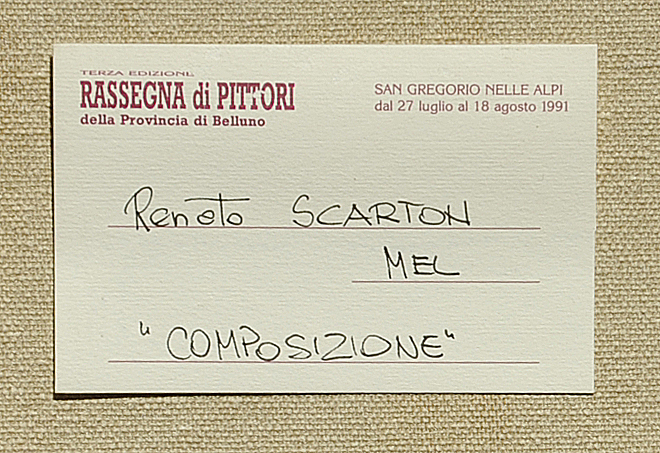RENATO SCARTON (1952) Composizione 1990 Tecnica mista su tela 100x80 cm. Firma e data al recto Provenienza: III Rassegna di pittori della provincia di Belluno