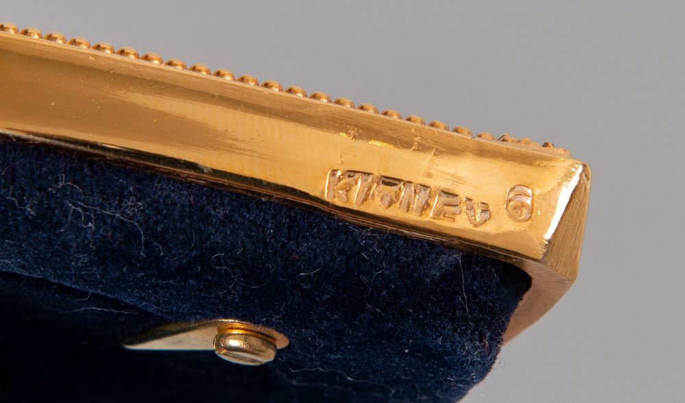 Cornice in lega e smalti. In cornice originale. Al lato reca punzone: Kitney....