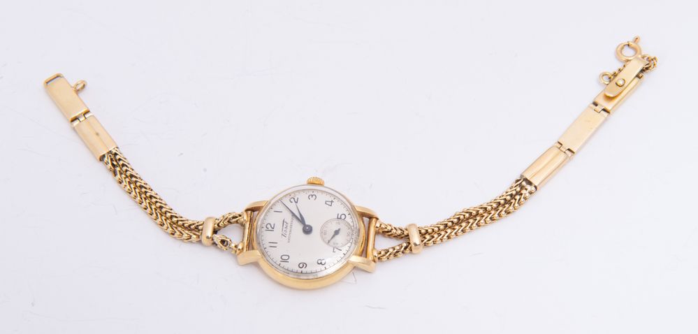 OROLOGIO PER SIGNORA. In oro giallo, cassa tonda in due corpi, quadrante marcato “Tissot Antimagnetique” con indici a numeri arabi, piccoli secondi ad ore 6, movimento a carica manuale. Peso complessivo 28,00 grammi. Si consiglia revisione.