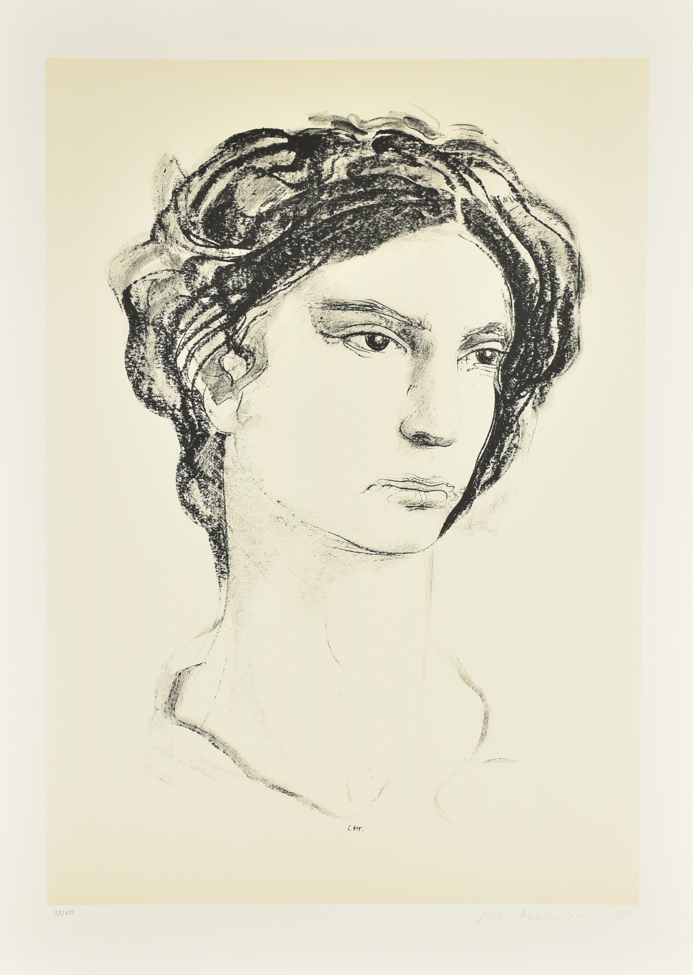 Pietro Annigoni RITRATTO litografia su carta, cm 70x50; es. 97/100 firma e...