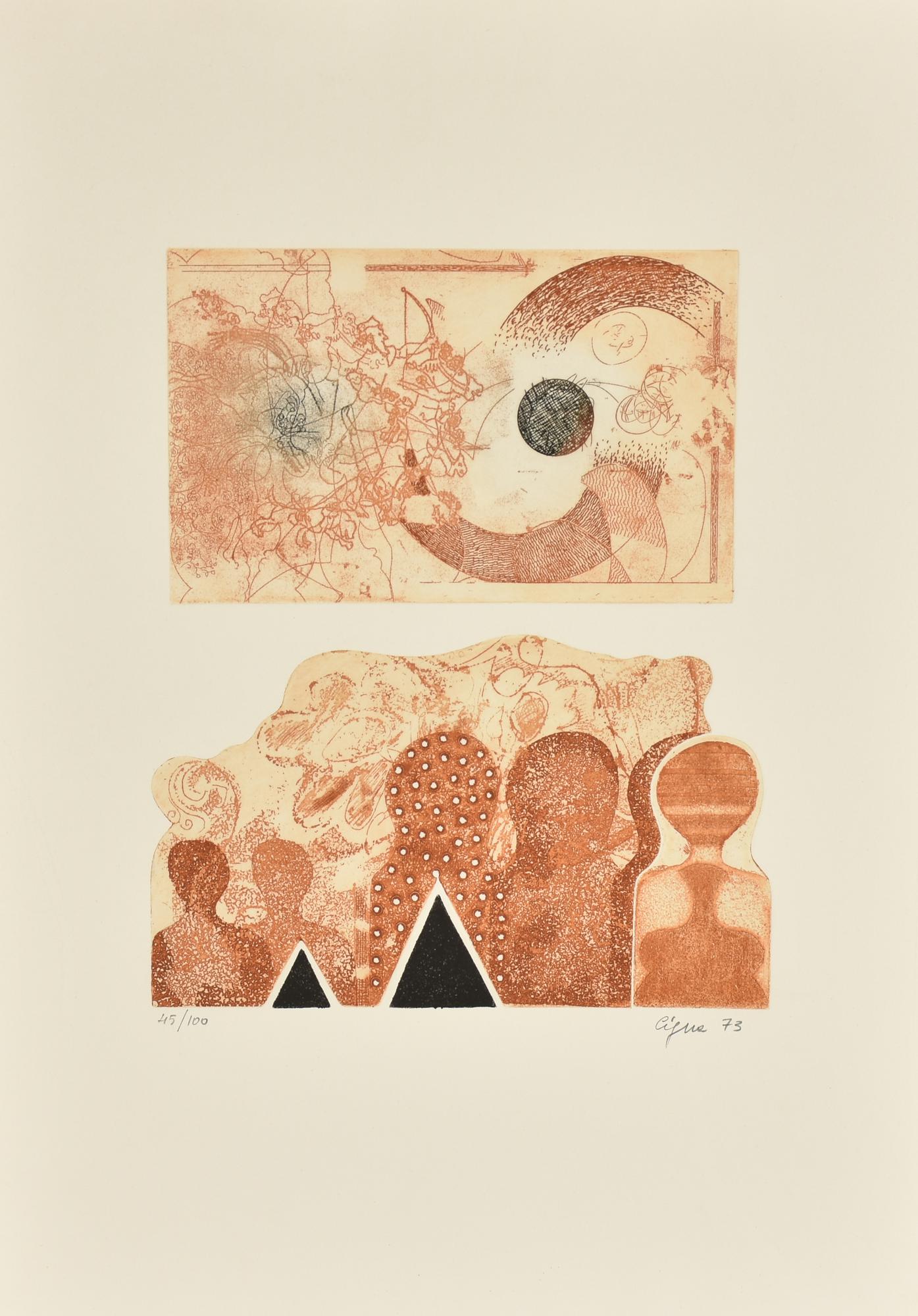 Giorgio Cigna CINEMA ALL'APERTO acquaforte/acquatinta su carta, battuta cm...