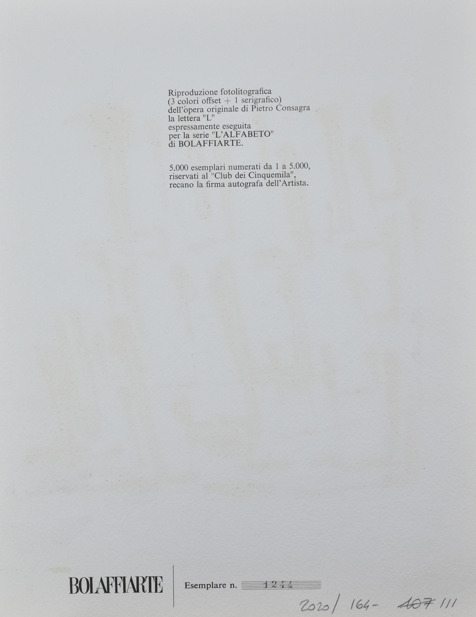 Pietro Consagra LETTERA L riproduzione fotolitografica su cartoncino, cm...