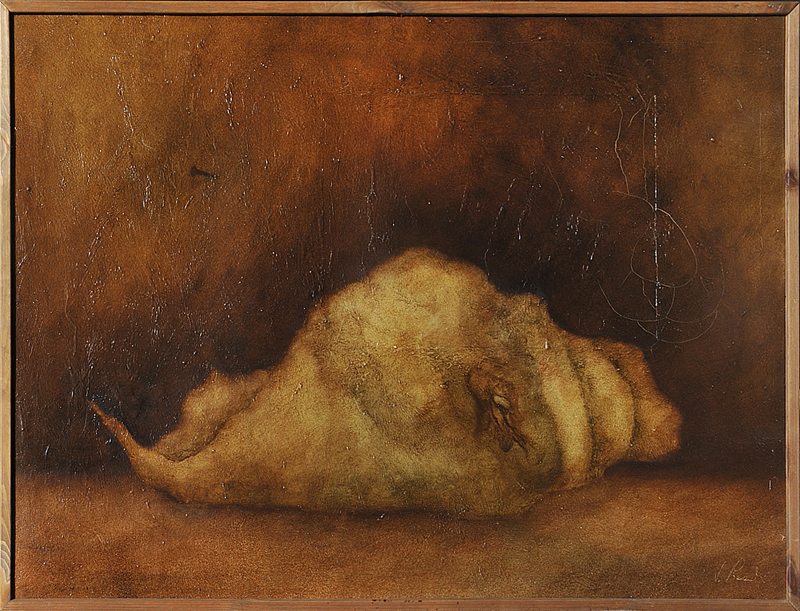 VITTORIO REALI (1960) Primordiale 27.5.2000 Stucchi, vinavil e olio su tela 100x70 cm. Firma al recto; firma, titolo, data e dedica al verso