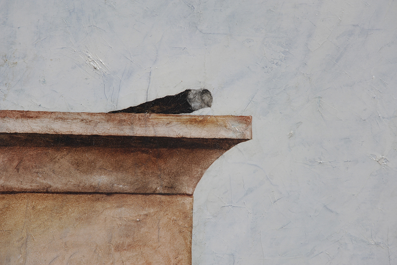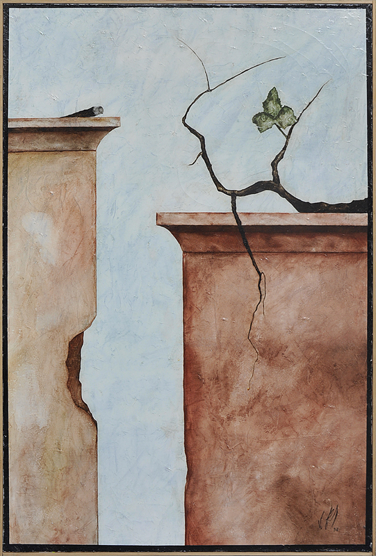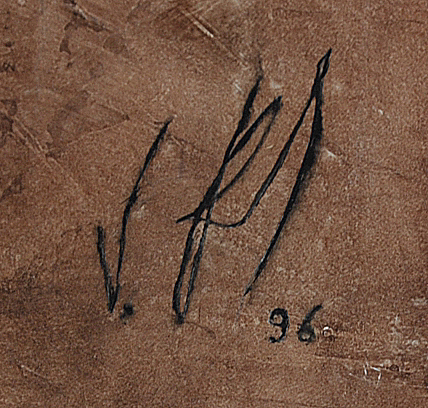 VITTORIO REALI (1960) Quel che resta 13.6.1996 Stucchi, vinavil e olio su tela 60x90 cm. Firma e data al recto; firma, data, titolo al verso