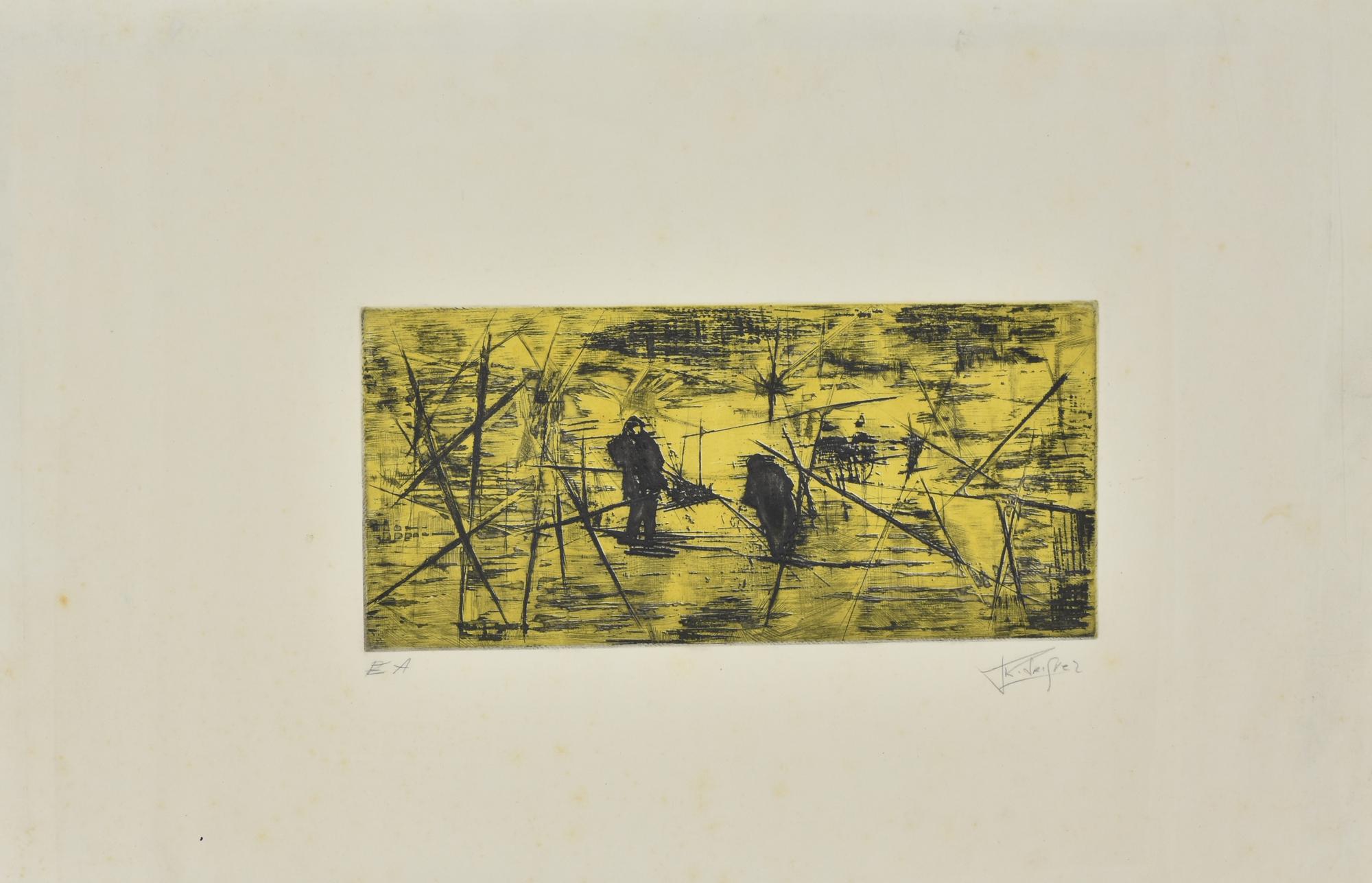 Lotto 183 | Silkbaja FIGURE NEL PAESAGGIO acquatinta su carta, cm 38x57 (lastra cm...