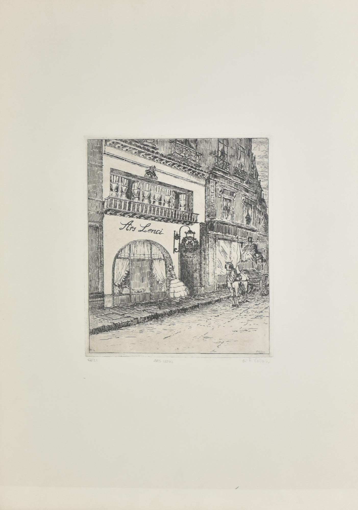 Felice Vellan ARS LENCI incisione su carta, battuta cm 30x25, su foglio cm...