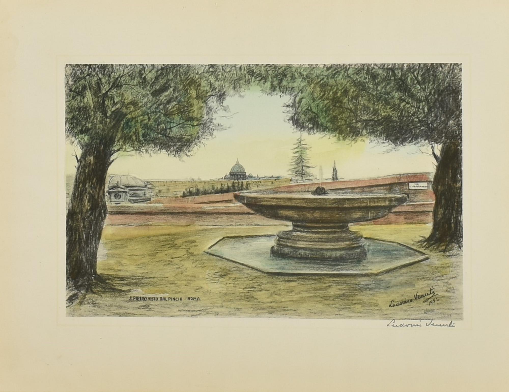 Ludovico Venuti S. PIETRO VISTO DAL PINCIO ヨ ROMA serigrafia su carta, cm...