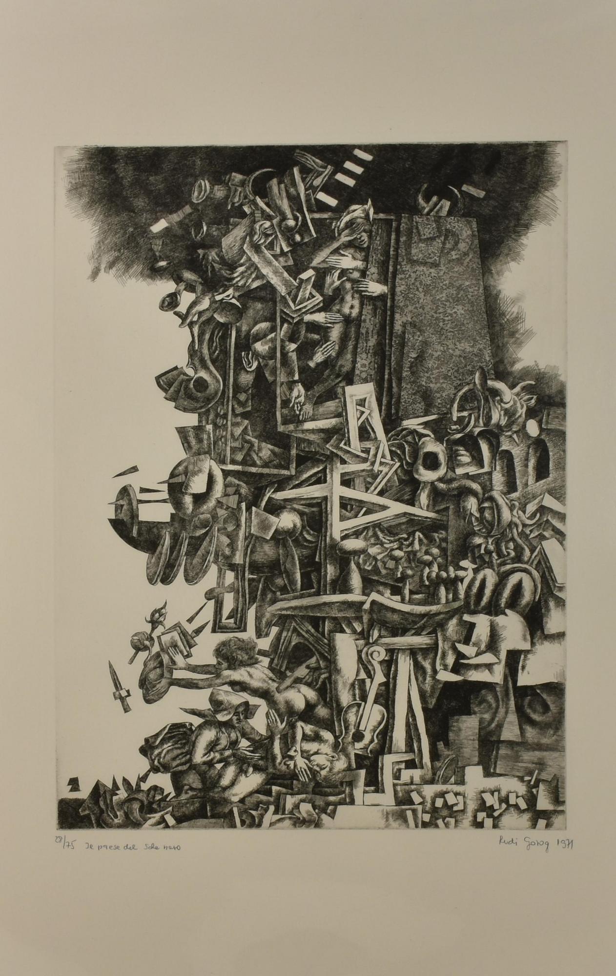 Rudi Gorog IL PAESE DEL SOLE ERO incisione su carta, battuta cm 59,5x39,5, su...