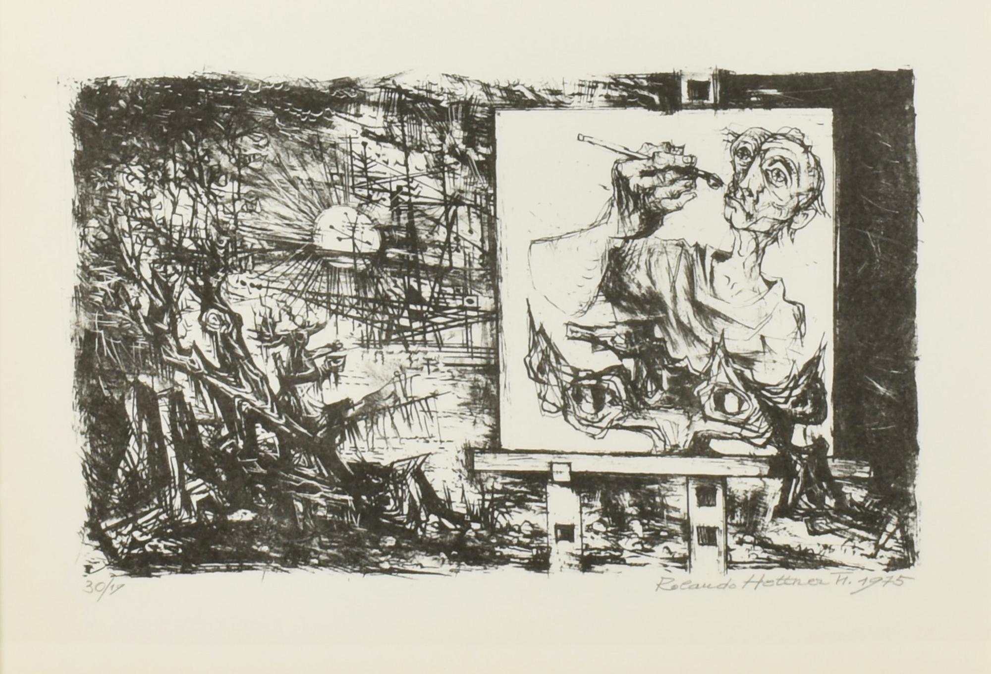 Lotto 245 | Rolando Hettner LO SPECCHIO E L'ARTISTA serigrafia su carta, cm 35,5x50;...