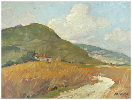 FRANCESCO MARIA PIERI Castagneto Carducci 1941 – Castagneto Card.1989 Paesaggio 1969 Olio su tavola 29,5 x 39,7. Firma in b. a d.; sul verso data, firma e titolo.