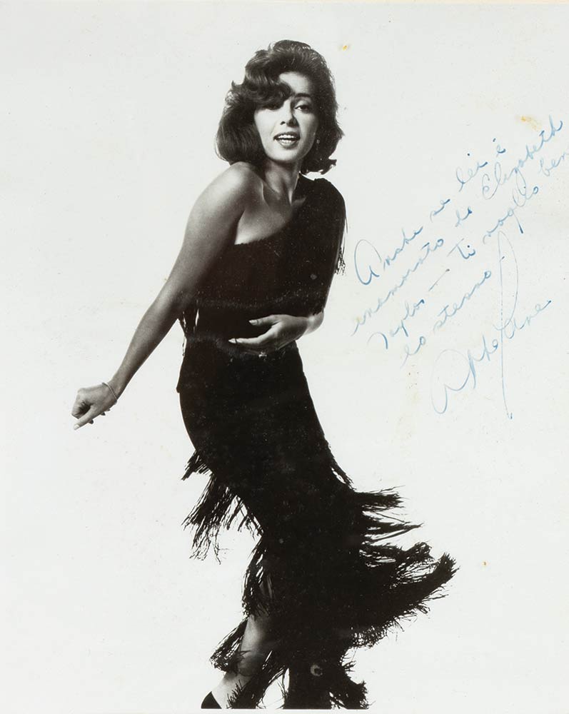 “Anche se lei è innamorato di Elizabeth Taylor ti voglio bene lo stesso”. Abbe Lane commenta la nota passione di Mimmo Cavicchia per Liz Taylor in una spiritosa dedica. Da rimarcare che, negli anni ’50, Abbe aveva conquistato il consenso del pubblico maschile italiano partecipando, in coppia col marito musicista Xavier Cugat, a show televisivi di grande successo. Le polemiche scatenate dalla sua prorompente sensualità sono anzi un divertente capitolo della storia della televisione italiana.